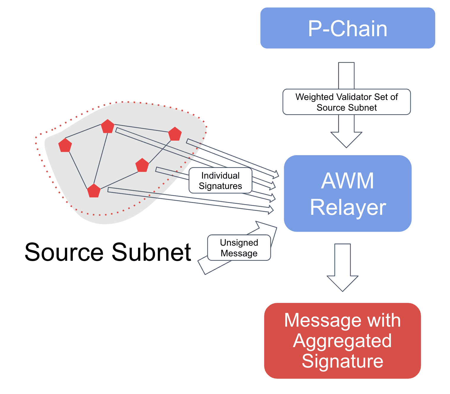 - Notification: The AWM Relayer is triggered whenever a new outgoing message is detected by a node.